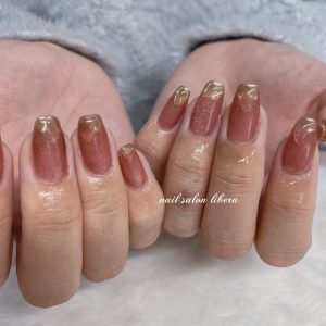 こんにちは!渡邉です! こだわりのピンクブラウンのような色味に ゴールドミラーのニュアンスぷっくりが とても可愛くておすすめです♪ カラーはマグネットも混ぜてあるので つい動かしてみたくなる可愛さでした☆