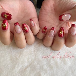 赤ラメフレンチ